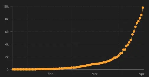 面白いことに気づくと思います。それは、途中までは指数関数的なのに、 それ以降は直線的ということです。 もし、感染が収束してるのであれば、傾きは減っていくはずです。