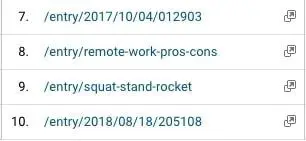ちょうど今、古いURLへのアクセスもされていて、新しく書いた記事はカスタムURLでインデックスされている状況でミックスな状態なのでどういうことなのか実例で説明します。