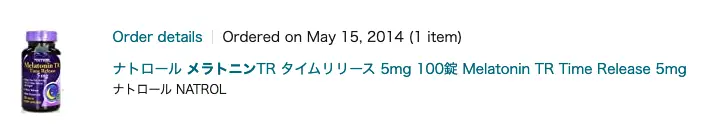 メラトニンは以前はアマゾンでも売っていた。 これは2014年の購入記録だ。 当時は、これをピルカッターで半分にして飲んでいた。