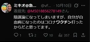 「陰謀論になってしまいますが」という枕詞は、彼がワクチンを打ったことを後悔していたことを表しているように思える。おれのような天才でない彼のような凡人にとって、大衆に従うことは当たり前のことで、ワクチンによって病気になるというのは陰謀論でしかない。だからそれを公言するようなことはよほど勇気のいることであり、ワクチンをしたことに対する強い後悔と、もう生きられないと悟った(発言の二ヶ月前には最後の手段であるハプロ移植も失敗している)ことが合わさって、枕詞付きという煮え切らなさはあるものの、コロナワクチンによって自分が白血病になったという確信を力強く公言するに至ったのだと思う。彼にとってこの発言はあるいは、懺悔のようなものだったのではないだろうか。