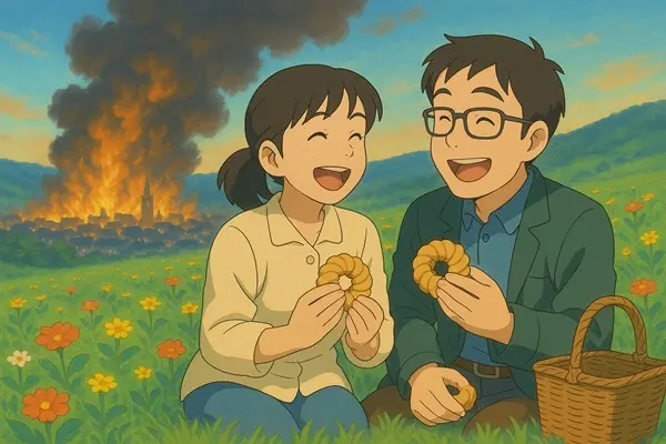 ワクチンによってファされる不安がない我々非接種エリートたちは、丘の上でおいしいフレンチクルーラーを食べながら、ファされている街を眺めている。おいしいフレンチクルーラーを食べて談笑しながら、街の中でワクチンした脳に障害のあるゴミどもがファされていくのを待っている。