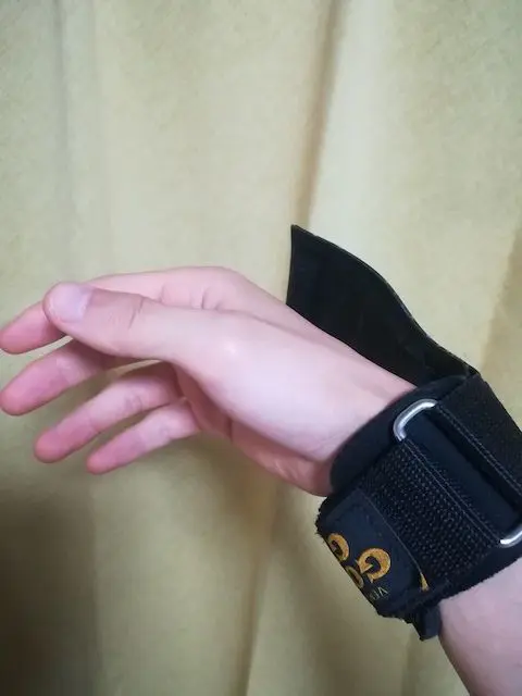 では何がパワーグリップの長所なのかというと、それは第一にセットアップの早さです。リストストラップでは、巻きつけるのに時間がかかりますが、パワーグリップではこの時間はほぼゼロ秒です。従って、少しでも握力の補助があれば十分という重量の種目では、パワーグリップでも十分です。